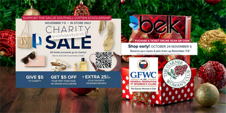 Buy tickets now and contact us at fundraising@garnerwomansclub.org or see any clubwoman for pick up! Members will be at Garner Belk on the following days/times f you would like to purchase more. 1450 Garner Station Blvd, Raleigh, NC 27603