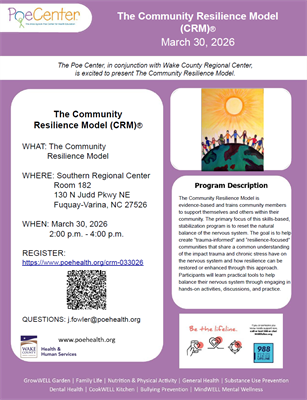 The Community Resiliency Model is evidence-based and trains community members to support themselves and others within their community. The primary focus of this skills-based, stabilization program is to reset the natural balance of the nervous system. The goal is to help create “trauma-informed” and “resilience-focused” communities that share a common understanding of the impact trauma and chronic stress have on the nervous system and how resilience can be restored or enhanced through this approach. Participants will learn practical tools to help balance their nervous system through engaging in hands-on activities, discussions, and practice.